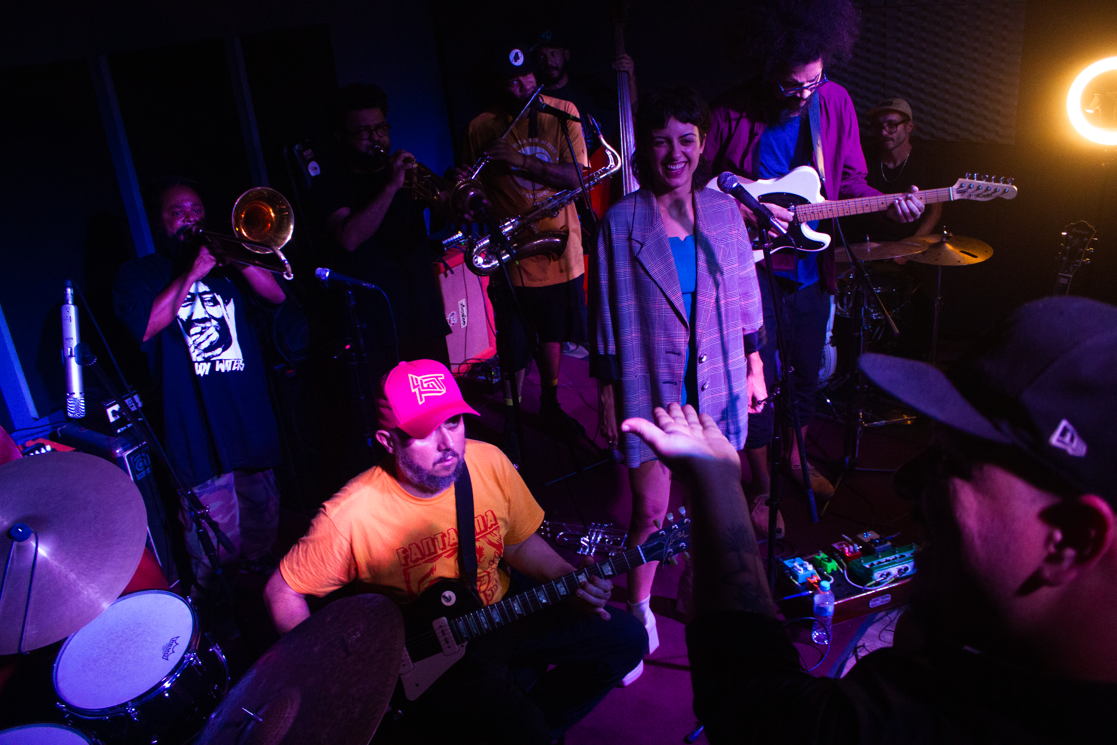 Ad Hoc é uma orquestra de improvisação sem membros fixos, idealizada por Guilherme 'Big' Peluci. No registro, participaram os músicos do Otis Trio, Conde Favela Sexteto e a cantora Carol Cavesso. Maio, 2023.